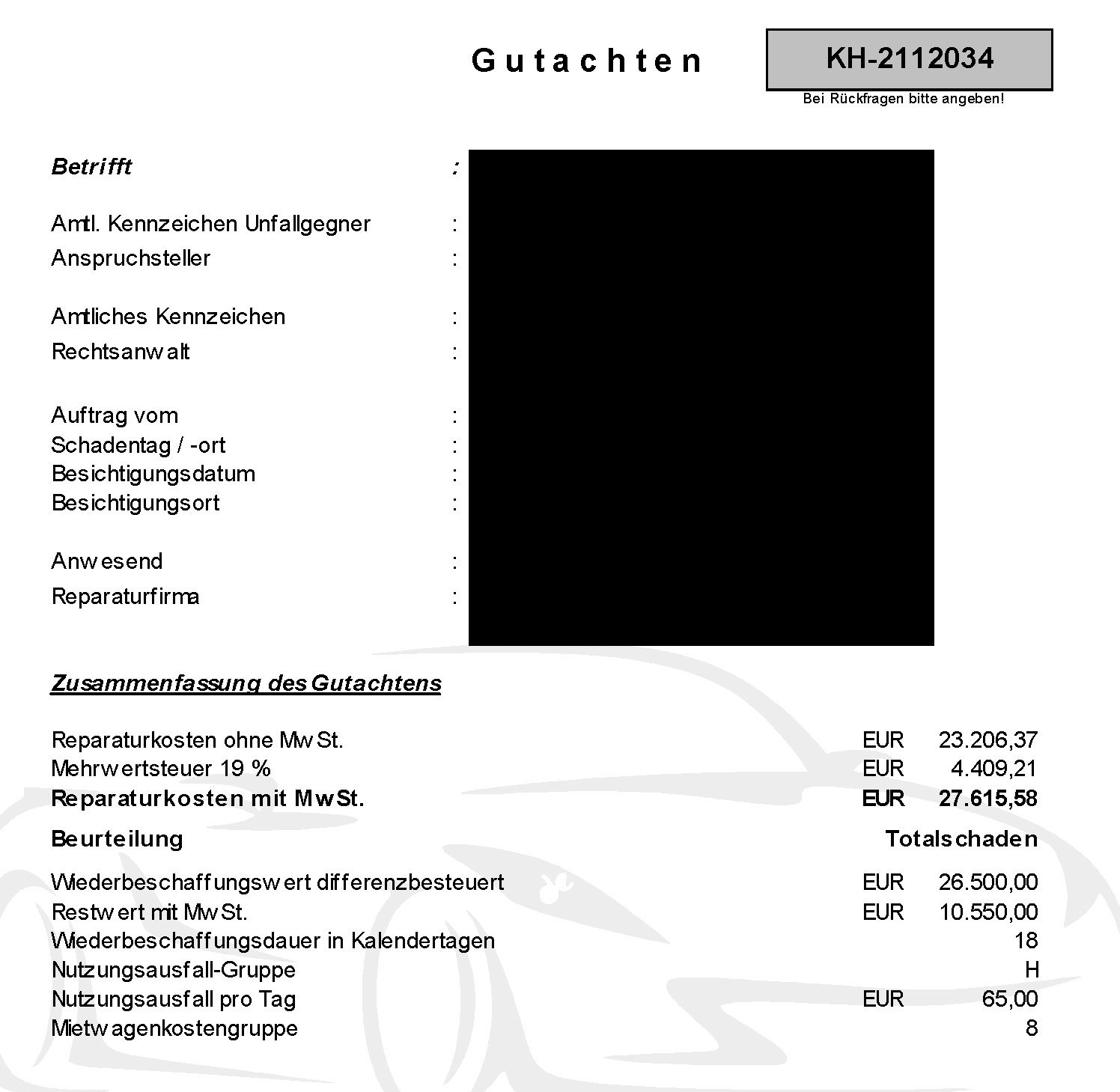 Für Dich als Geschädigten natürlich kostenlos.